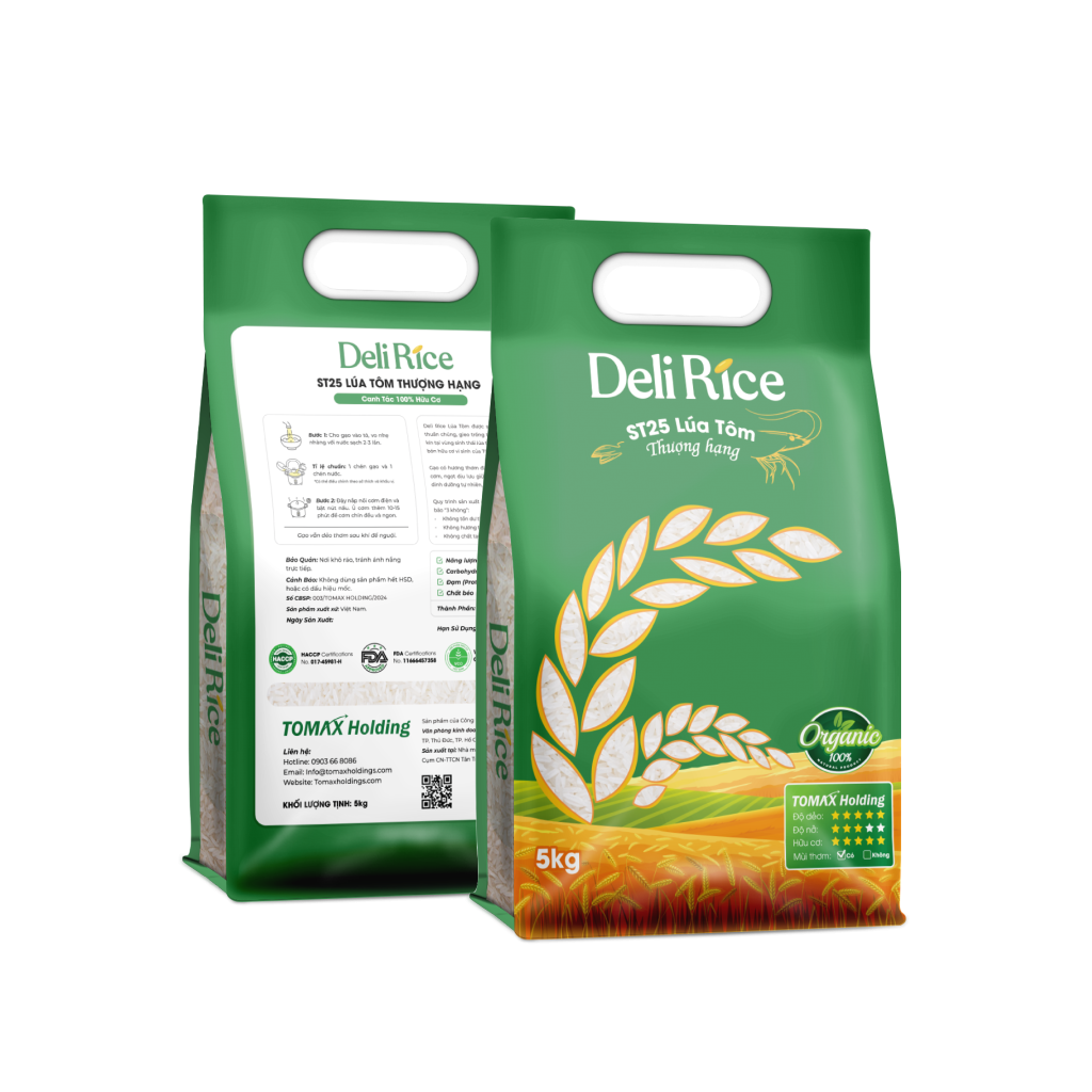 Gạo ST25 Lúa Tôm Deli Rice của Tomax Holding là sản phẩm gạo cao cấp, kết hợp giữa chất lượng vượt trội và phương pháp canh tác bền vững. Với hạt gạo dẻo, thơm ngon và an toàn cho sức khỏe, sản phẩm này đáp ứng nhu cầu dinh dưỡng và khẩu vị của người tiêu dùng. Gạo ST25 không chỉ mang lại những bữa ăn ngon mà còn góp phần phát triển nông nghiệp bền vững, khẳng định vị thế sản phẩm nông sản Việt Nam trên thị trường quốc tế.