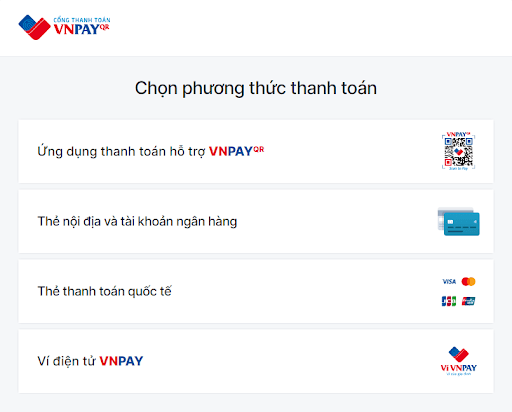 Tương tự như phương thức thanh toán “Thẻ nội địa và tài khoản ngân hàng” - Phương thức thanh toán qua “Ví điện tử VNPAY”