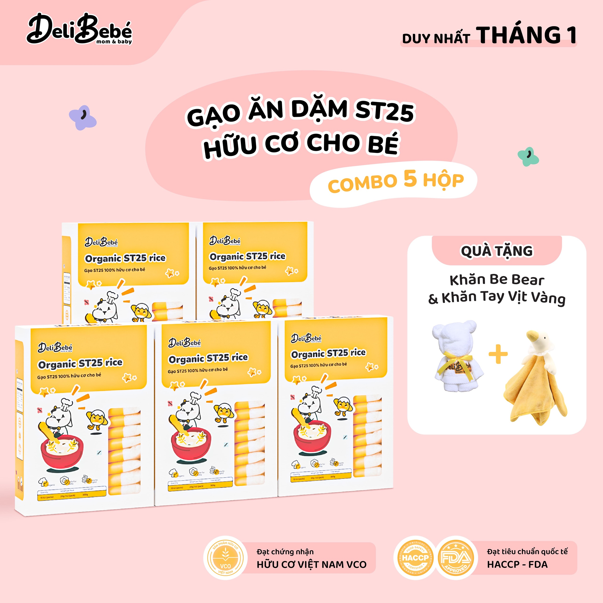 4. Tặng Bông Tắm / Khăn Vịt Lành cho các đơn hàng Gạo ăn dặm Deli Bebé. Xem chi tiết